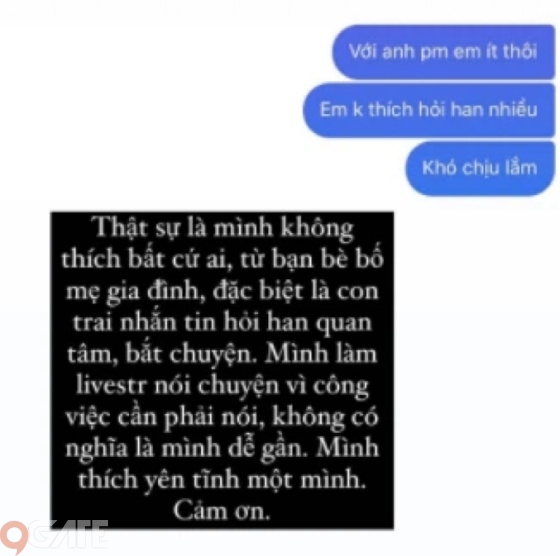 Theo đó, cô nàng cho biết, livestream nói chuyện vì đó là công việc bắt buộc mà thôi, thậm chí những người thân thiết như bố mẹ và bạn bè, cô nàng này cũng không muốn nhận được sự hỏi han.