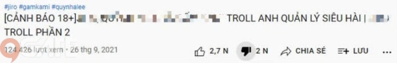 Bên cạnh đó, video clip này đang nhận về lượt dislike trên YouTube là 2.000, trong khi lượt like là 2.700, tức là tỉ lệ xấp xỉ cứ 3 người thích video này thì sẽ có 2 người ấn dislike. Điều này cho thấy, không phải cứ lợi dụng truyền thông là các loại hình content bẩn sẽ thu hút được người xem, đó là còn chưa kể hình ảnh của các streamer này đã thực sự “xuống cấp” trong mắt nhiều người. Nếu cứ tiếp tục thực hiện các video clip ngắn với nội dung vui vẻ thì có lẽ hình ảnh của họ đã không hoen ố trong tâm trí khán giả như vậy.