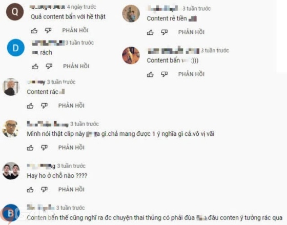 Bởi lẽ khán giả giờ rất văn minh, họ chỉ cần đọc tiêu đề, xem qua một chút về nội dung là đủ biết đây là content dàn dựng, câu view và không ít người sẽ lựa chọn “tắt” để dành thời gian xem cái khác có ích hơn. Thời gian xem đó chưa đủ để YouTube tính là một lượt views. Chưa kể, clip mở lại đã lâu, vẫn có không ít những bình luận lên án và phê phán, cho rằng đây là content “bẩn” không hơn không kém.