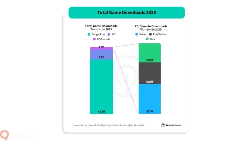Theo báo cáo, trong tổng 52 tỷ lượt tải game trên di động, PC và console, riêng di động đã đóng góp tới 50 tỷ lượt. Điều này củng cố nhận định rằng smartphone vẫn là thiết bị tiếp cận game dễ dàng và ít rào cản nhất, nhờ sự phổ biến toàn cầu cùng mô hình miễn phí tải về.