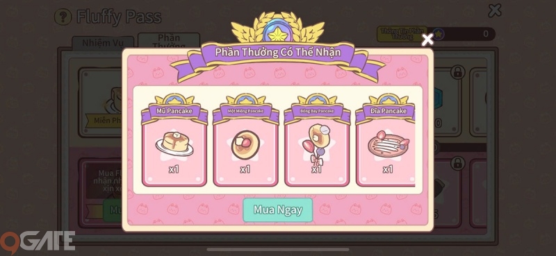 Tham gia Fluffy Pass, người chơi có cơ hội sở hữu nguyên set trang phục Pancake độc quyền, thêm vào tủ đồ cho các boss mèo một bộ trang phục mới. Bên cạnh đó là các phần quà quen thuộc nhưng thiết thực như Đá quý và Nguyên liệu sản xuất, hỗ trợ người chơi trong quá trình xây dựng và phát triển thị trấn.