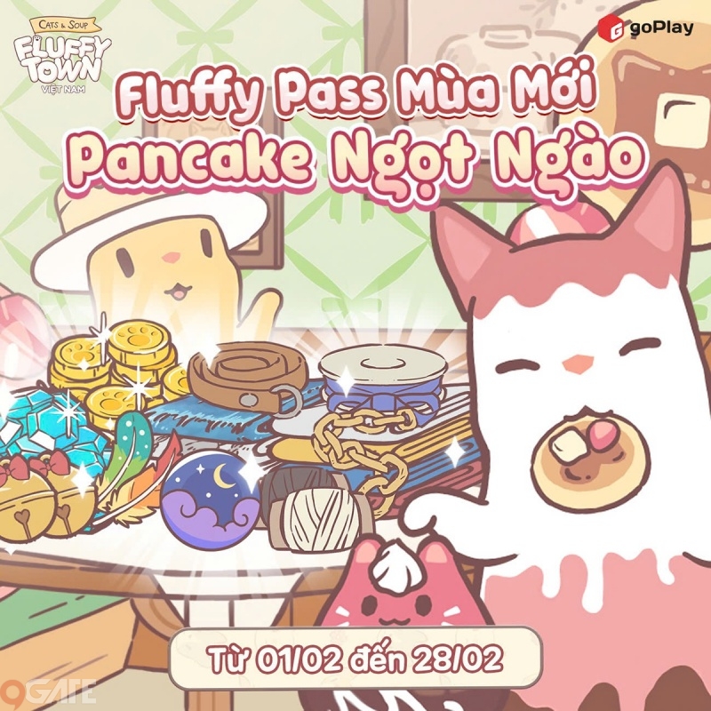 Fluffy Pass “Pancake Ngọt Ngào” diễn ra từ 01/02 đến 28/02, dành cho toàn bộ người chơi Cats & Soup: Fluffy Town Việt Nam. Theo dõi các kênh chính thức của game để cập nhật những thông tin mới nhất: