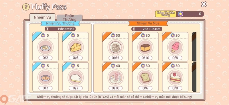 Fluffy Pass “Pancake Ngọt Ngào” tiếp tục giữ nguyên cơ chế hoạt động quen thuộc của các mùa trước. Người chơi chỉ cần hoàn thành nhiệm vụ sự kiện để tích lũy Điểm Sao, từ đó mở khóa và nhận các phần thưởng theo tiến trình, không áp lực cạnh tranh, phù hợp với lối chơi “chill” đặc trưng của Cats & Soup: Fluffy Town Việt Nam