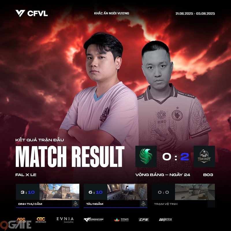 Nếu chiến thắng của DRX Esports là một cú sốc thì thất bại của Team Falcons lại là một địa chấn thực sự. Vị vua của CFVL, đội đang dẫn đầu bảng xếp hạng với phong độ hủy diệt, bất ngờ thất bại với tỉ số 0-2 trước một Team Legacy đầy quyết tâm.