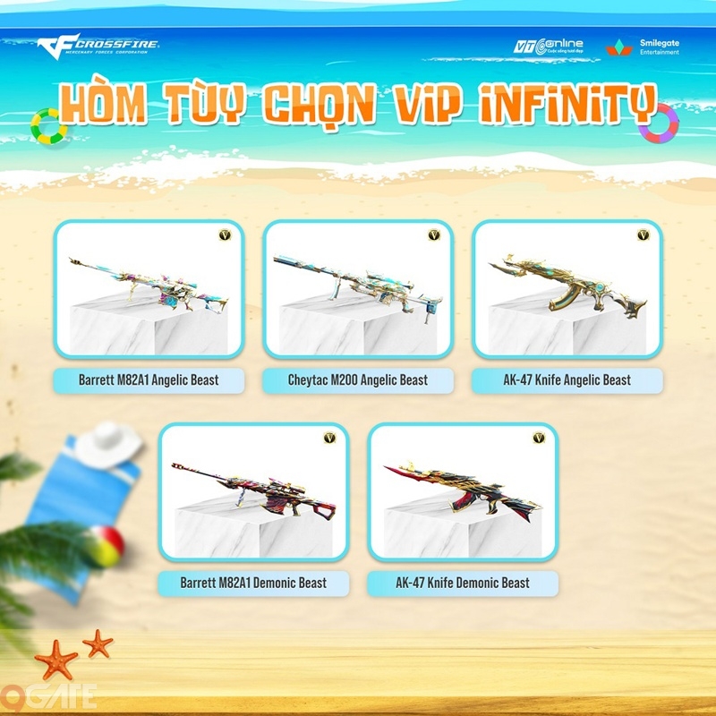 - Hòm tùy chọn VIP Infinity: Barrett M82A1 Angelic Beast, Barrett M82A1 Demonic Beast, AK-47 Angelic Beast, AK-47 Demonic Beast và Cheytac M200 Angelic Beast.