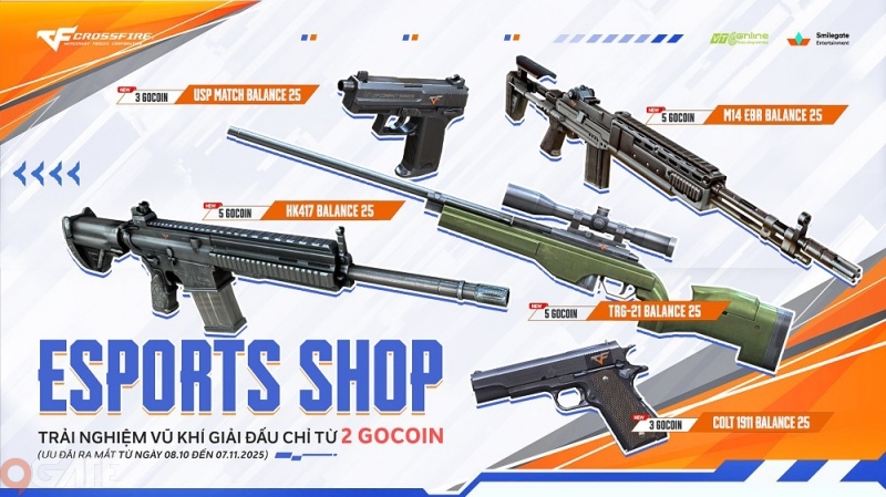 Nhằm mang đến cho cộng đồng cơ hội tập luyện và trải nghiệm các vũ khí chuẩn thi đấu eSports, hệ thống eSports Shop của Crossfire đã chính thức được ra mắt. Tại đây, người chơi có thể thuê cả set hoặc từng món vũ khí riêng lẻ thay vì phải mua trọn bộ như trước. Mức giá ưu đãi sẽ được áp dụng cho toàn bộ vật phẩm trong tháng đầu tiên ra mắt. Đặc biệt, các vật phẩm đã thuê có thể được thuê lại sau 15 ngày, giúp xạ thủ dễ dàng quay lại thử nghiệm và luyện tập theo kế hoạch cá nhân.