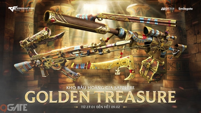 Trong giai đoạn cuối tháng 1 và đầu tháng 2 này, cộng đồng Crossfire sẽ có dịp chứng kiến m àn trình làng của 2 Kho Báu Hoàng Gia mới là Cá Chép Vàng (Ruby) và Golden Treasure (Sapphire). Hai Kho Báu này sẽ cung cung cấp các vật phẩm thuộc 2 bộ vũ khí đặc biệt mang tên tương ứng.
